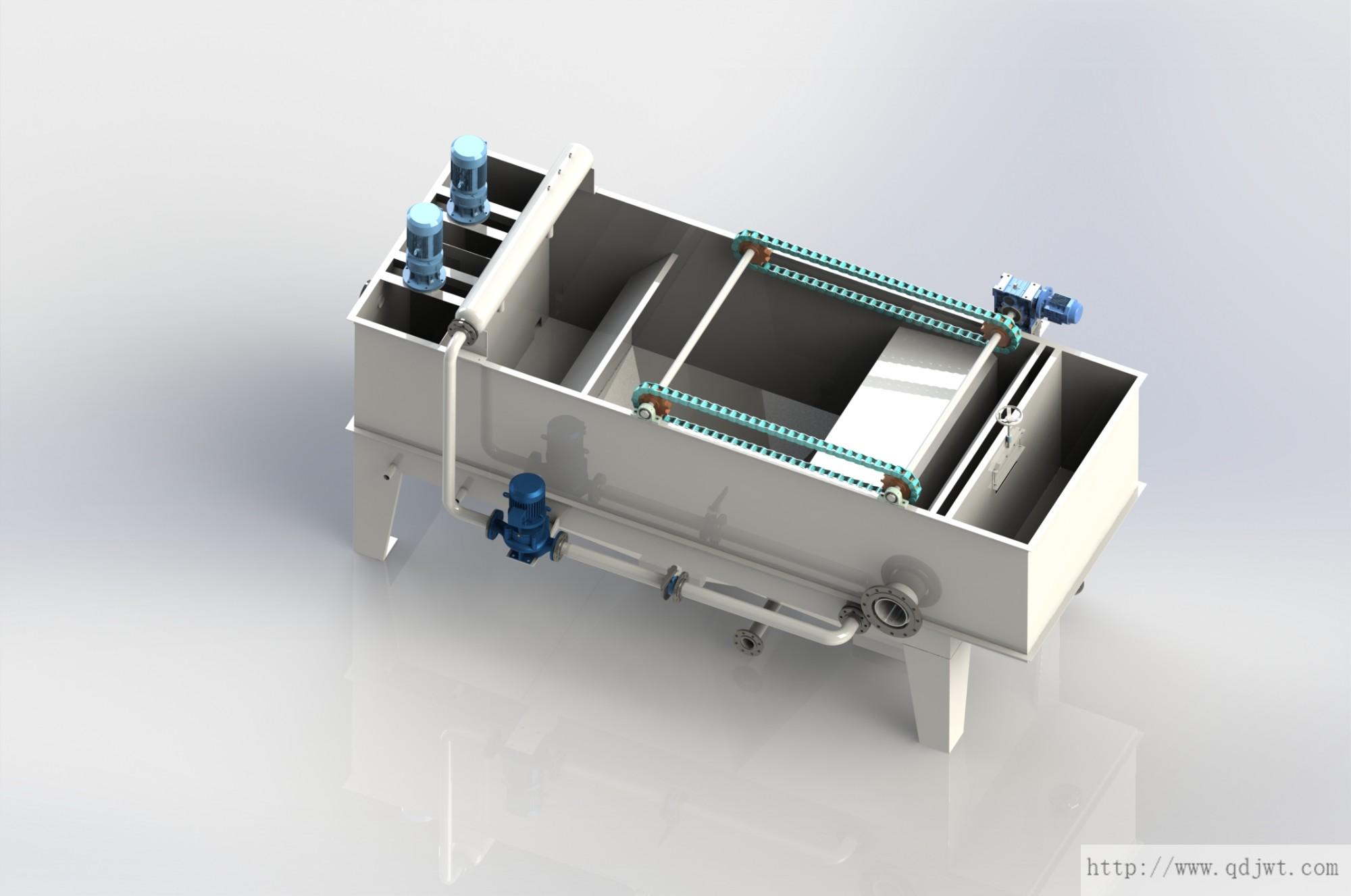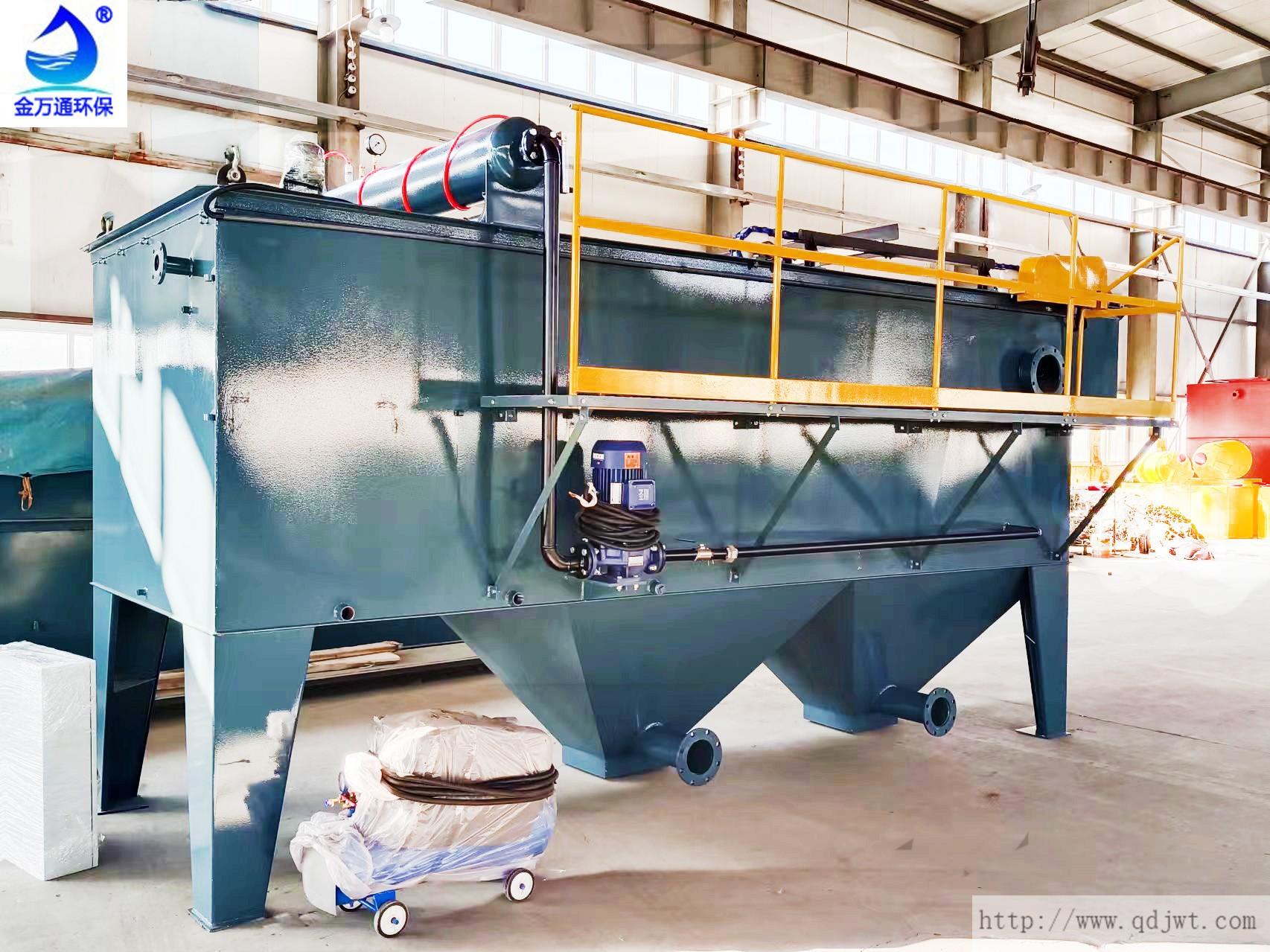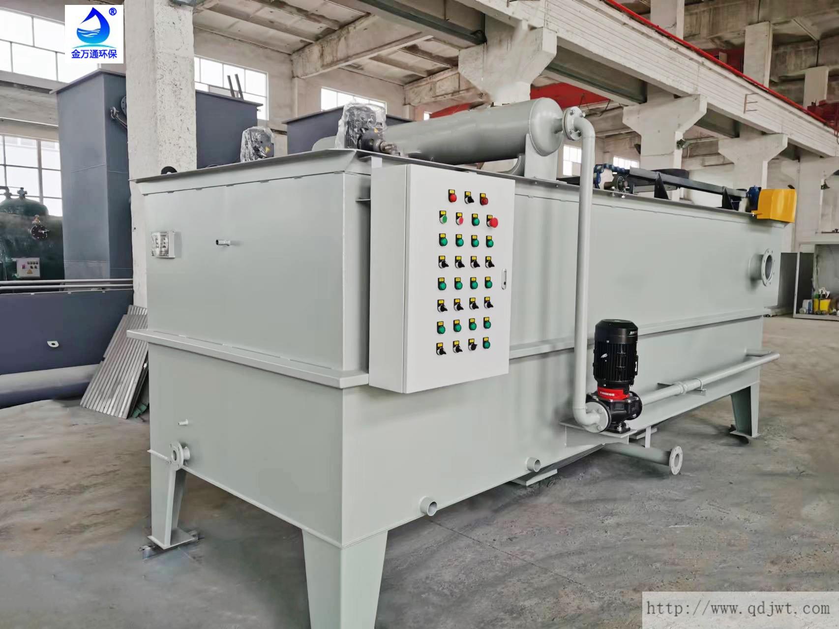 氣浮裝置是在一定條件下將大量空氣溶于水中,形成溶氣水,作為工作介質,通過釋放器驟然減壓從而快速釋放,產生大量微細氣泡粘附于經過混凝反應后廢水中的“礬花”上,使絮凝體快速上浮,從而迅速地除去水中的污染物質,達到凈水的目的。