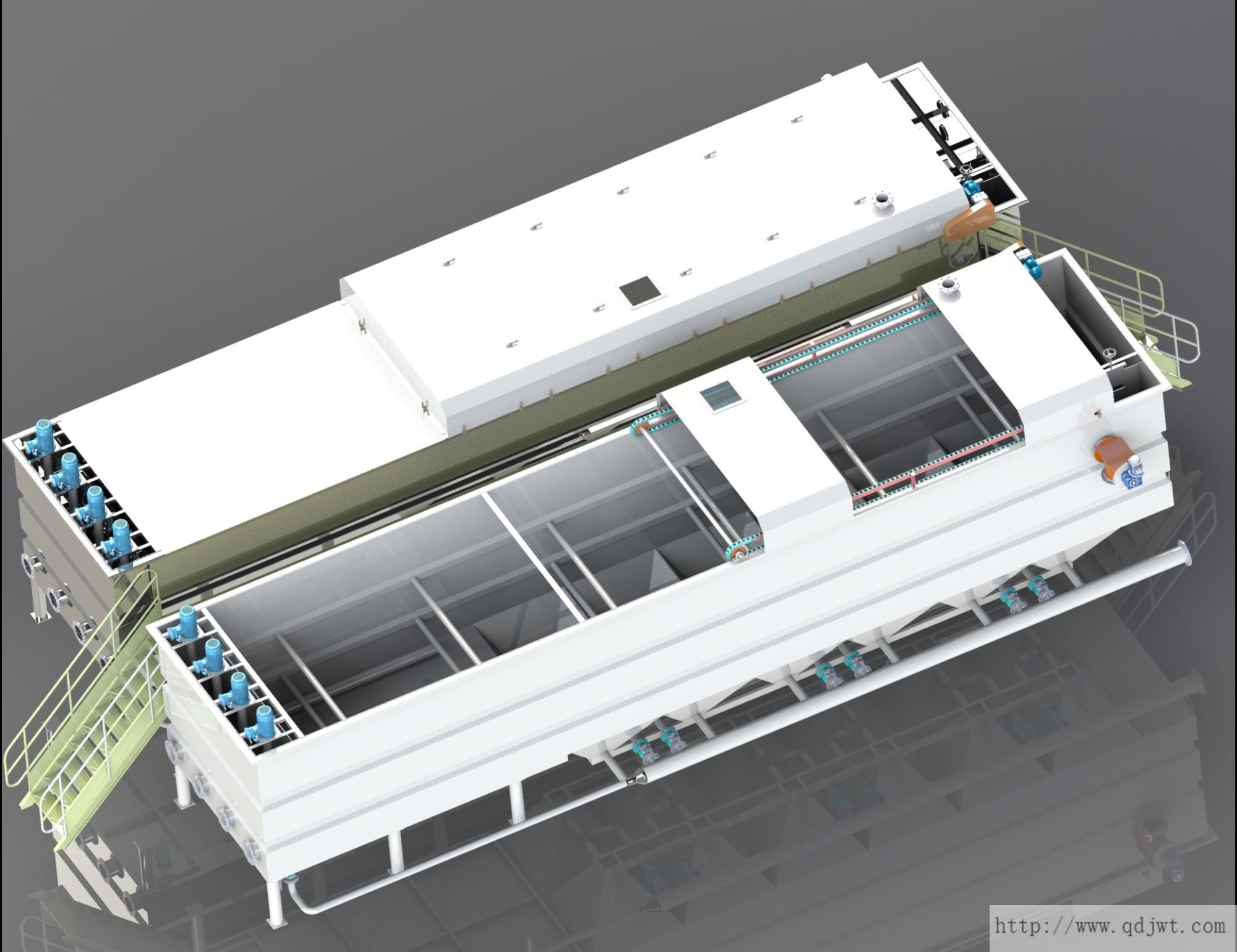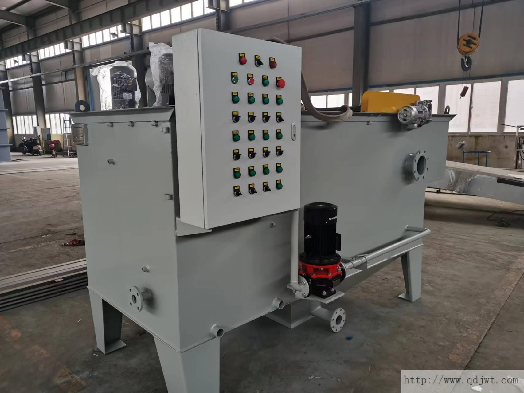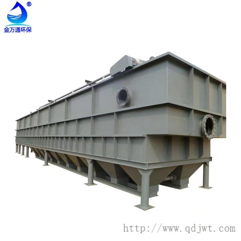 氣浮裝置是在一定條件下將大量空氣溶于水中,形成溶氣水,作為工作介質,通過釋放器驟然減壓從而快速釋放,產生大量微細氣泡粘附于經過混凝反應后廢水中的“礬花”上,使絮凝體快速上浮,從而迅速地除去水中的污染物質,達到凈水的目的。